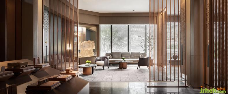 在這個(gè)虛化了古與今、自然與建筑界線的靜謐空間中,銷售中心設(shè)計(jì)無(wú)數(shù)道屏風(fēng)銜接起的光明與暗影里,一種從東方世界觀里生發(fā)而出的中正平和之美,串聯(lián)起了一切空間、線條、色彩、材質(zhì)的內(nèi)在意義。