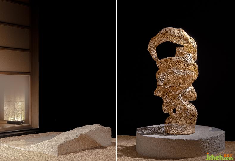 △《器》:研磨的石雕塑象征匠心精神。寓意著用心準(zhǔn)備的器具,力求為客人做出最好的料理。