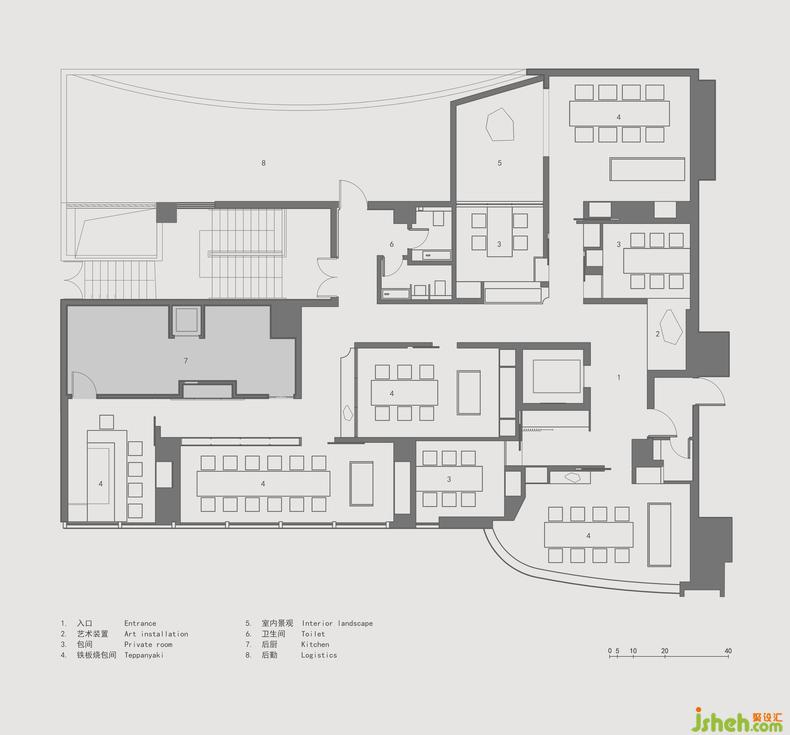 △《望》(底座裝置):客人可以俯瞰雕塑的全景。也可以在另外的角度看到雕塑的一角。餐廳設(shè)計(jì)寓意著提供各種色香味節(jié)能吸引人的料理。