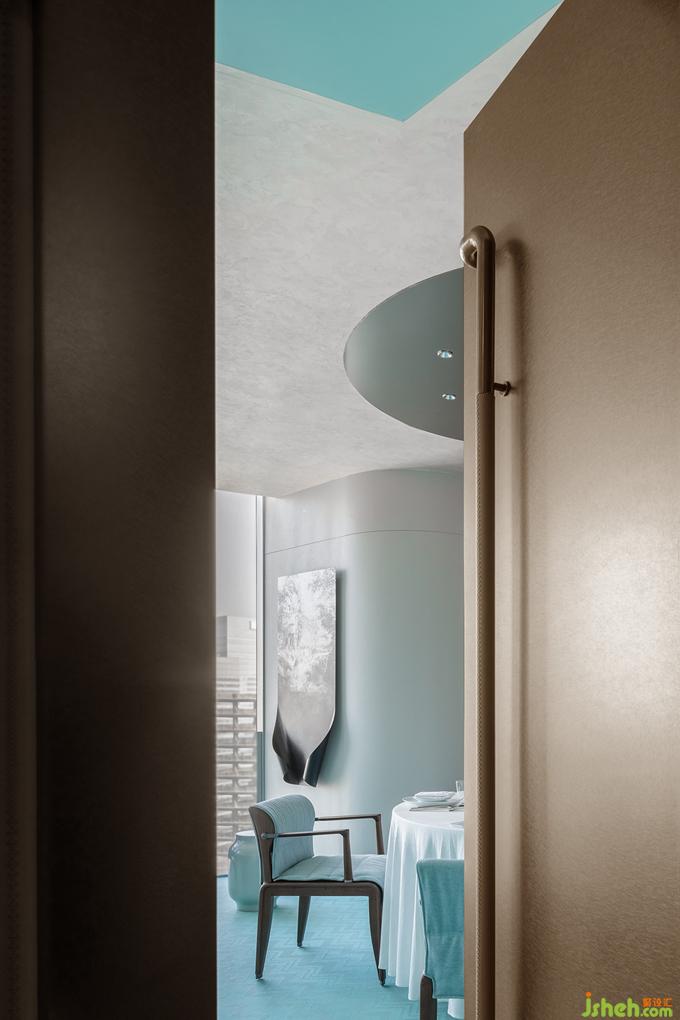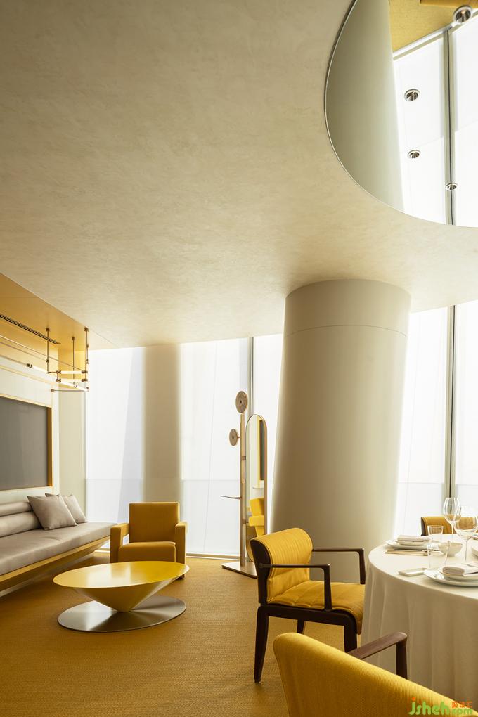 “黃”,既是傳統(tǒng)陰陽(yáng)五色學(xué)系中最為尊貴的色彩,也是頂級(jí)奢侈品牌衷睞的金色時(shí)尚經(jīng)典。借助視覺(jué)語(yǔ)言與朝向?qū)傩浴⒐庥白兓?、角度關(guān)系的整合考量,空間隨時(shí)間的推移而變換生動(dòng)的表情,被夕陽(yáng)似暈輪浸染時(shí)尤佳。洋溢的色彩與幾何模塊式結(jié)構(gòu)連貫為極簡(jiǎn)語(yǔ)言序列,潮汕匠人純手工創(chuàng)作的金漆木雕則與之重組文化密碼。