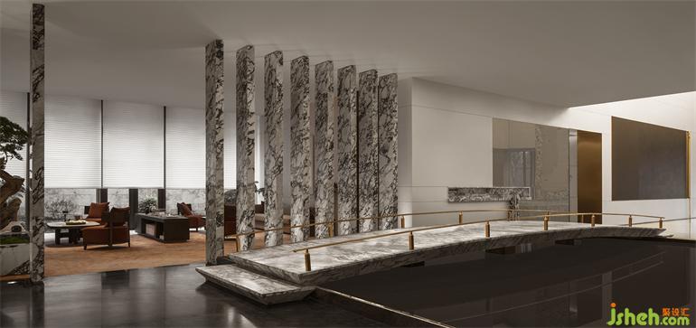 VIP室則更突出私享感,張力十足的藝術(shù)品在私密的空間中形成強(qiáng)大氣場(chǎng),美學(xué)館設(shè)計(jì)如詩社般氤氳的空間氛圍自帶高階的沉靜。來自揚(yáng)州的精致工藝在此被藝術(shù)化地呈現(xiàn):印刷雕版、絹布刺繡,還有詩歌的在地性都化作設(shè)計(jì)的詞匯,被寫進(jìn)這首短詩里。
