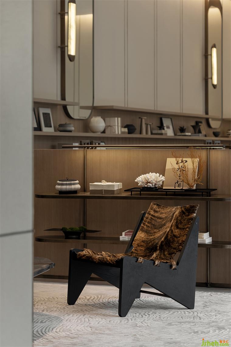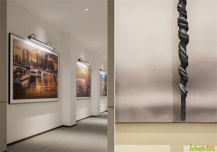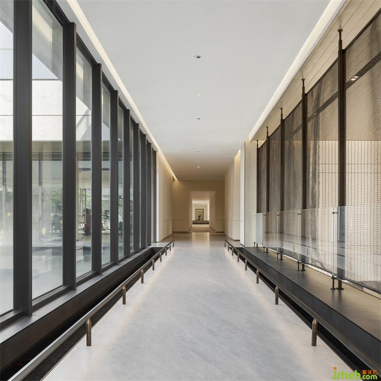 茶室空間延續(xù)著竹木與山石之色的主題,伴著墻上的抽象水墨畫,氤氳出一片茶煙靜氣,簡潔的現(xiàn)代家具則在東方風(fēng)韻之外更添禪思。健身空間也依中央庭院而立,明亮的光線讓運(yùn)動也別有一份樂活有機(jī)的氛圍。裝修設(shè)計最后的看房通道猶如一條藝術(shù)畫廊,關(guān)于青島記憶的老照片展列于此,鏈接起人與城市的記憶,從而譜寫出一曲藝文交織的琴島詩話。