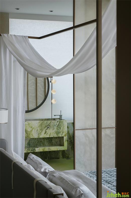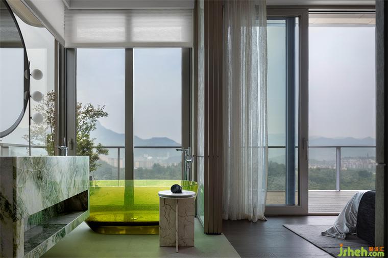 南陌高山碧,東方曉氣青。青,生命之色,東方之色。若翠山疊嶂,若層云涌現(xiàn),源遠(yuǎn)流長(zhǎng)之中蘊(yùn)含了東方獨(dú)特的傳統(tǒng)美學(xué)意蘊(yùn)。只此一色,其意無(wú)窮盡。西邊澗野,東邊廳堂。可望遠(yuǎn)山一抹青黛,心中怡然。東方泛白,之后為青,從清微淡遠(yuǎn)逐漸至光芒四射,這便是每日天空中的第一抹色彩。將青在室內(nèi)延展,綠城樣板房設(shè)計(jì)仿若締造一場(chǎng)東方美學(xué)與現(xiàn)代設(shè)計(jì)的碰撞。遠(yuǎn),可與群山呼應(yīng),營(yíng)造山居意遠(yuǎn)、放曠無(wú)涯的意境。