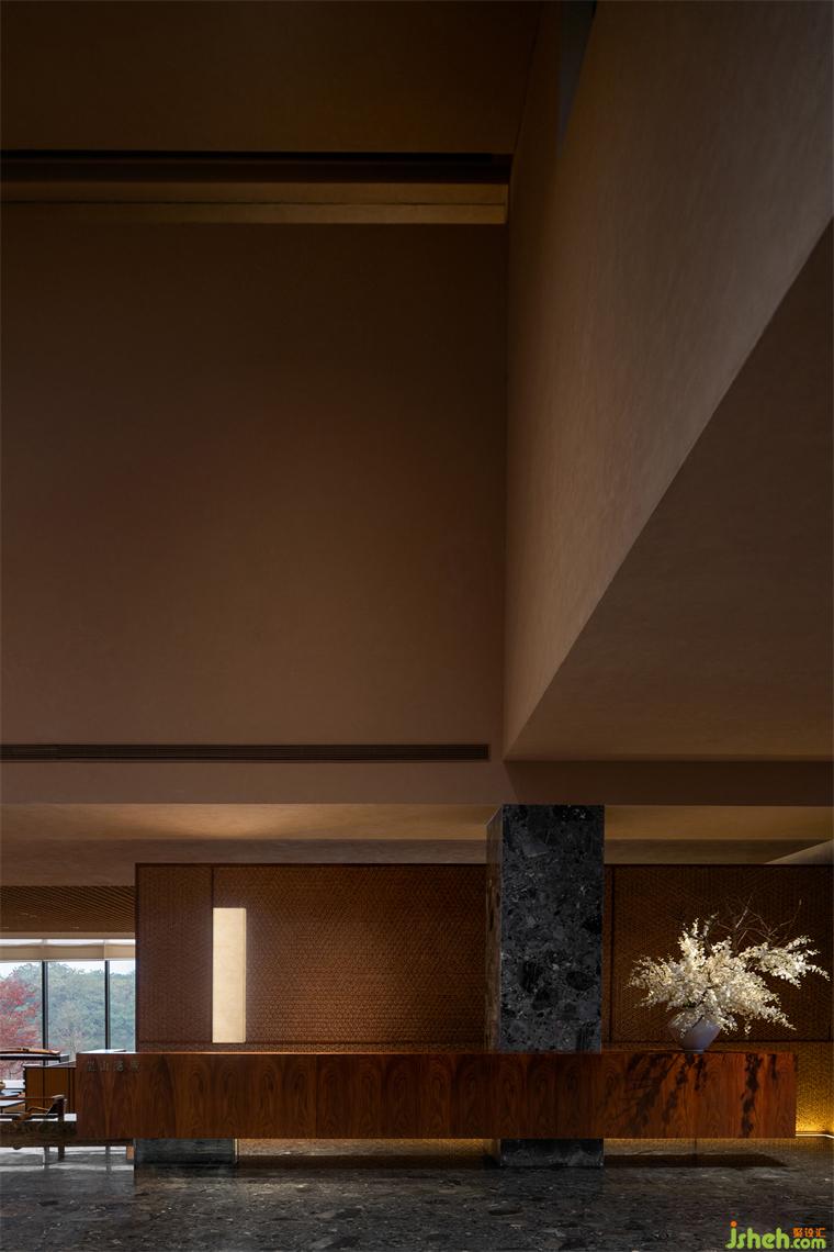 墻面采用當(dāng)?shù)靥沾u砌成,化繁為簡,返璞歸真。于空間內(nèi),藝術(shù)館設(shè)計(jì)巧妙利用光影塑造時(shí)間的動(dòng)態(tài),使空間結(jié)構(gòu)與自然對話、與時(shí)間呼應(yīng)。巨大的水面與外部湖光山色相接倒映,使得風(fēng)景無界,漫入內(nèi)部空間。裝修設(shè)計(jì)天井傾瀉而下的天光,鏤空墻體灑入的光影緩慢變化,游蹤所至的感官體驗(yàn),令每一個(gè)人在抵達(dá)時(shí)都會(huì)被這鄭重的儀式感觸動(dòng)內(nèi)心。