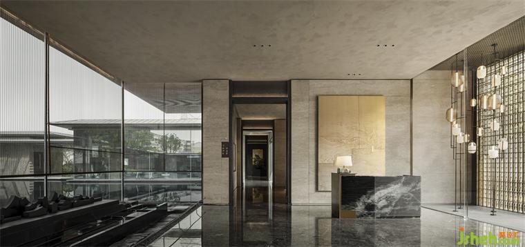 接待大廳模糊了與水景的界限,湖光瀲滟中,樹影婆娑,裝修設計四時之光景,天地之從容,皆納入空間規(guī)劃,成全東方式的隱奢之美。