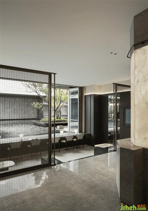 城市會(huì)客廳涵蓋會(huì)客觀景、共享餐吧、書(shū)吧等,各空間仿佛悠浮湖上的島嶼,移步異景,妙趣橫生。會(huì)所設(shè)計(jì)以“曲折盡致,深遠(yuǎn)不盡”之意趣,巧于因借,精在體宜,使自然的變化、時(shí)間的流淌與空間呼應(yīng)共鳴,營(yíng)造一方超然物外的雅致空間。