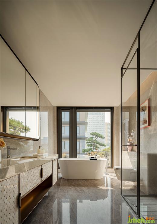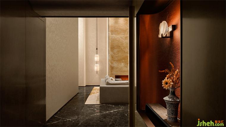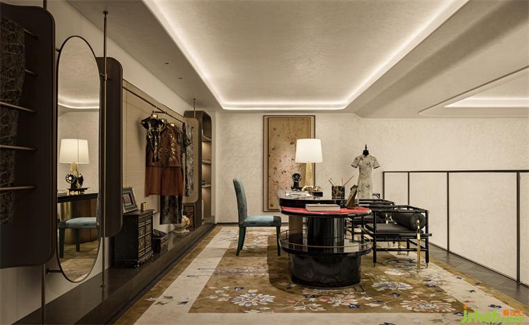 在夾層空間辟出寂靜一隅作為服裝高定工作室,于靜謐之中坐擁一段專屬的時光。樣板房設(shè)計(jì)祥瑞圖案信手拈來,凝聚在纖細(xì)又迂回的紋路里,呈現(xiàn)華而不俗、古樸高雅的氛圍感。