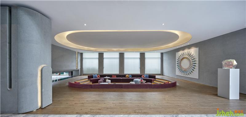 深度洽談區(qū)通過下沉式弧形區(qū)域分隔設(shè)計(jì),打造圍合與開放、私密與共享并存的平衡。墻面上的藝術(shù)畫”夢(mèng)境彩虹“像是神秘的圖形符號(hào),沖擊著視覺感官,深邃的引人一探究竟。突然一只兔子跳出來,來到愛麗絲的仙境!