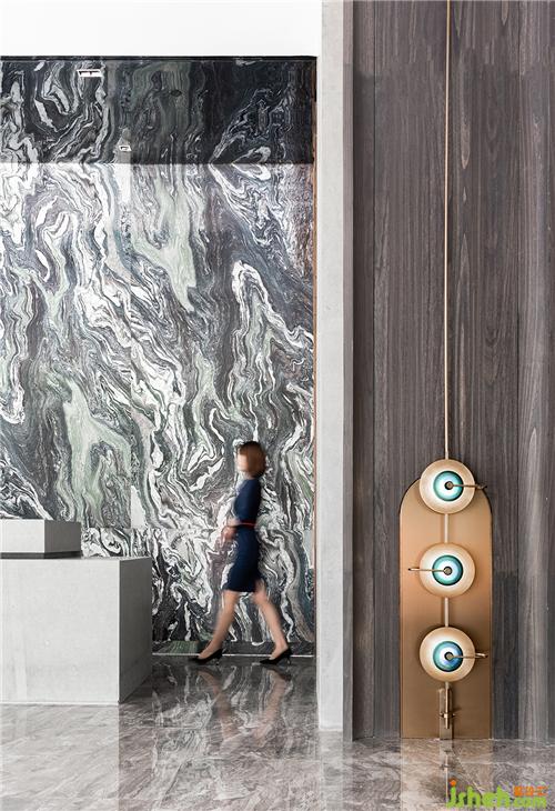 步入前廳,入眼便是瀲滟的水晶吊燈與大理石背景帶來的視覺沖擊。