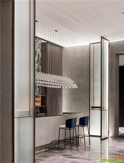 連綿成片的透明吊燈,在室內(nèi)撒下一片星星點(diǎn)點(diǎn),銀波微漾,美輪美奐。滿足功能需要的同時,也為空間籠罩上一層夢幻情致,模糊了現(xiàn)實(shí)與幻想的界限。