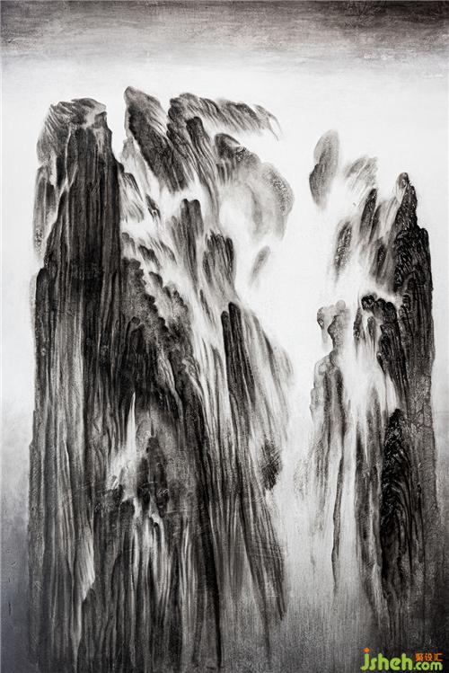 灰色墻面之上,懸掛著一幅意境朦朧又有氣勢的山水畫。畫卷上端微微翹起,增添了一絲虛實(shí)交融的氣息,仿佛有山間微風(fēng)拂過窗欞,輕輕吹起白色窗簾,于是景色也便在這其中,微微搖動。