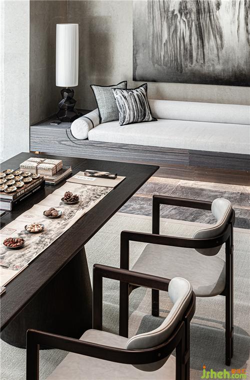 書籍、畫卷、墨寶…… 鋪構(gòu)了書香雅韻,構(gòu)建當(dāng)代生活空間的文化氣質(zhì),顯得寧靜而雅趣。