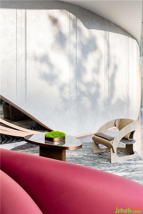 深洽區(qū)的家具設(shè)計著重體現(xiàn)生命的愉悅與歡欣,線條圓潤,色彩柔美,配以植物裝點,整體如一首有形的抒情詩。好的空間,是要既有藝術(shù)的格局,亦不減生活的氣息。
