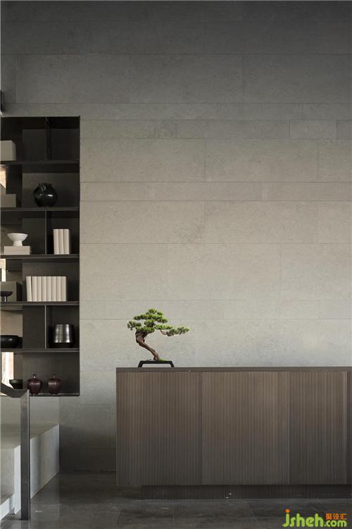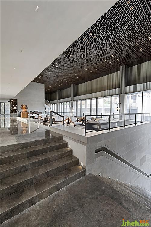 由樓梯轉入一層空間,側面使用篆刻中的陰刻手法刻出扶手,顯示人性溫度的同時,又保有了美學態(tài)度。