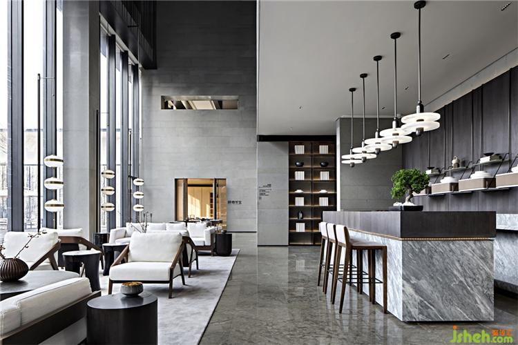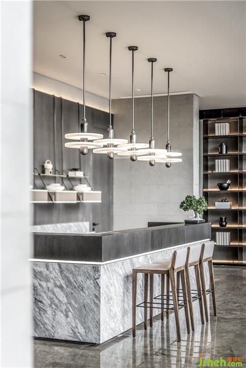 水吧延續(xù)簡(jiǎn)潔質(zhì)感,質(zhì)感的大理石與溫暖木材的配色,濃度不同的灰色變化出豐富的層次感,協(xié)調(diào)出一個(gè)有溫度又精巧的空間,營(yíng)造出一種經(jīng)歲月沉淀的慵懶與淡然。