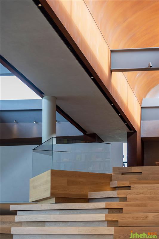 這種建筑的倫理功能也成為了一種公共功能,使個體通過建筑在彼此間產(chǎn)生聯(lián)系。展廳與夾層之間的景觀階梯便體現(xiàn)了這種功能,是一個重要的空間節(jié)點。