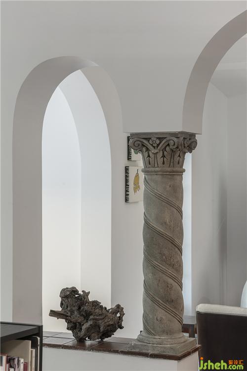 老建筑改造的“洋手法”以解構(gòu)式的現(xiàn)代藝術(shù)語言呈現(xiàn)。空間妙趣橫生,古典意味的西班牙螺旋柱莊重、肅穆、浪漫。古典元素與前衛(wèi)藝術(shù)邂逅,帶來思緒靈感。色彩運用與空間設(shè)定調(diào)和出一處自由沉溺的烏托邦,讓觀者在飄忽思緒,抵達未知之域。