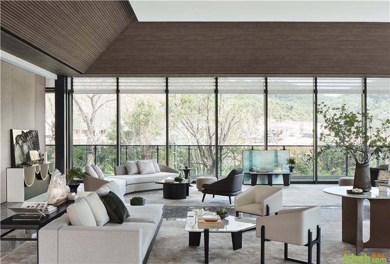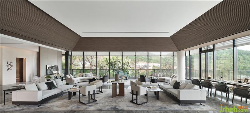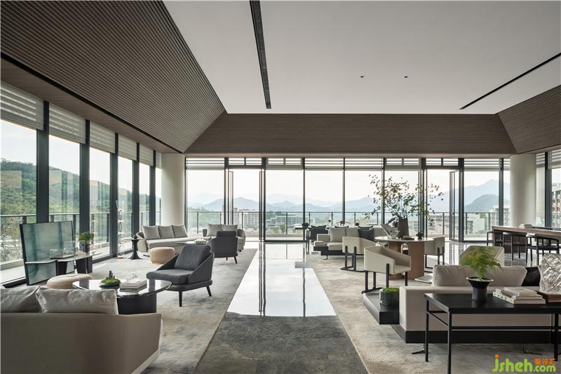 吊頂木質(zhì)元素的引用古樸、自然、溫和,上海售樓處設(shè)計(jì)大面積的落地窗隱藏內(nèi)外界限,石材質(zhì)走道與坐賓區(qū)沙發(fā)椅錯(cuò)落擺放,厚重而誠(chéng)摯,使到訪者賓至如歸。