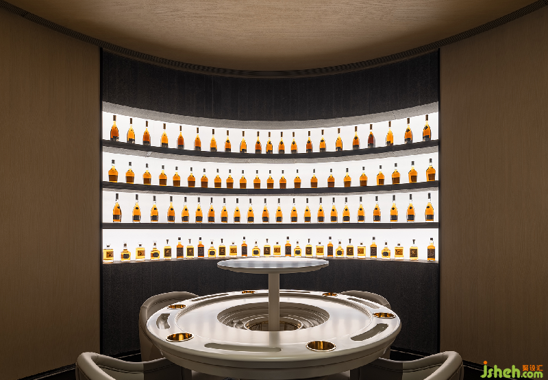 娛樂(lè)區(qū)域?qū)⒛撅椕嬉愿鄬哟蔚念伾宫F(xiàn),燈光過(guò)罩面柔化處理,帶來(lái)美學(xué)展陳的優(yōu)雅序列,幽深、曖昧的氛圍創(chuàng)造為空間注入和雅之味。