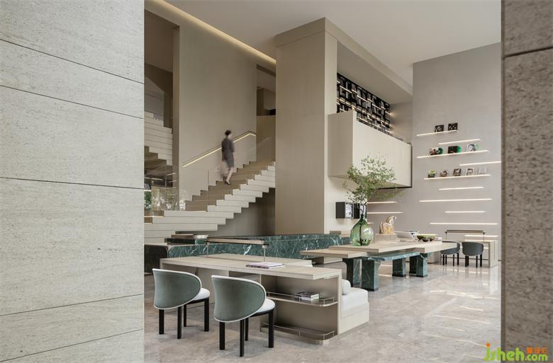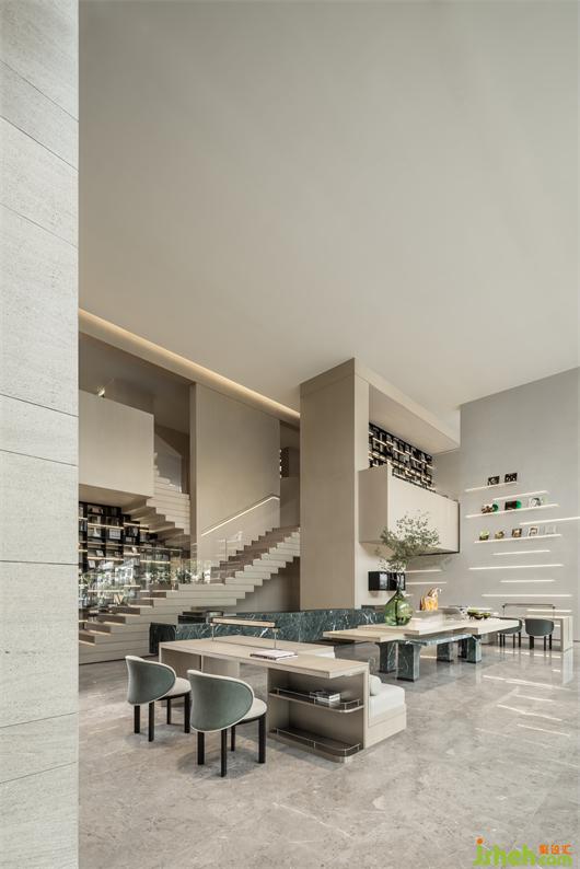 設(shè)計(jì)師意圖在空間中呈現(xiàn)出一條“藝術(shù)走廊”。順沿著步入動(dòng)線,細(xì)節(jié)處的體驗(yàn)微妙、精細(xì),使人始終能感知一種不經(jīng)意卻撥動(dòng)心弦的律動(dòng)與節(jié)奏。與此同時(shí),包容性的多元功能打造盛放豐富的生活內(nèi)容,集閱讀、社交、社群、活動(dòng)多功能于一體。