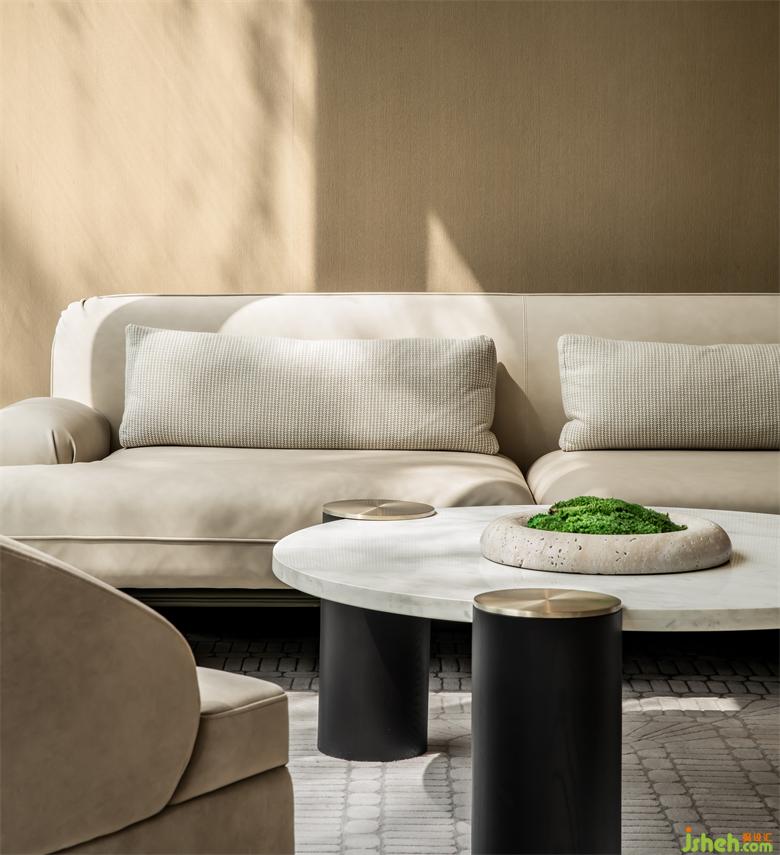 承載著原有城市生活的空間印記,超越了簡單的更新。設(shè)計師將營銷中心的場景例行化,注重使用的舒適性,營造自然的空間體驗感。沙發(fā)椅具有自然的色彩,觸感柔軟,貼近大地的淳樸色澤退去繁復(fù),為城市社區(qū)生活帶來返璞歸真的休閑感受。