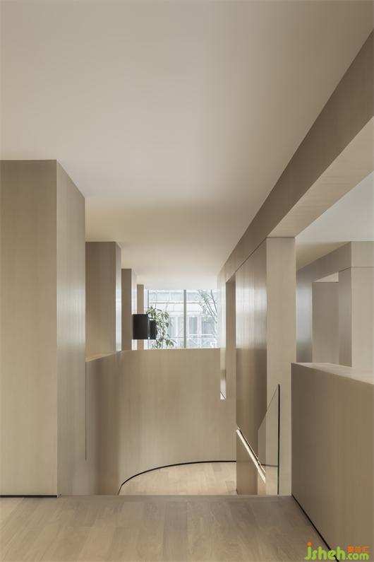 原木材質(zhì)盡情流淌,譜出空間詩學(xué),利用溫柔質(zhì)感,自然過渡不同的功能區(qū)域。極具視覺延伸的觀景感,與曲徑通幽的轉(zhuǎn)角細(xì)節(jié)融為一體。直線與曲線彼此貫通,光在變化的結(jié)構(gòu)中穿梭,始終交織著風(fēng)與光的美好旋律。