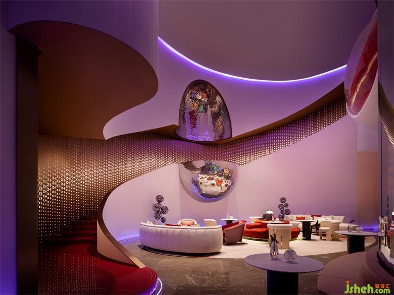 在爵士酒吧氛圍的營造中,設(shè)計師搭配燈光,賦予空間曲線鮮活、靈動的情境。