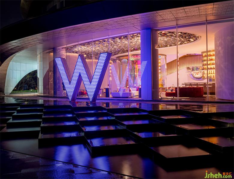夜幕降臨,標(biāo)志性字幕閃耀,在夜色與空間之間蕩起瀲滟。多變的色彩混合交織,在黑夜的神秘背景下,空間形成一抹都市霓虹。