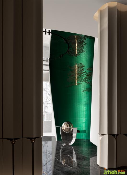 鏡面將日光反射,折射出無(wú)數(shù)的棱鏡形式,武漢售樓處設(shè)計(jì)在一片又一片綠色光磚上映出郁郁蔥蔥的森林。
