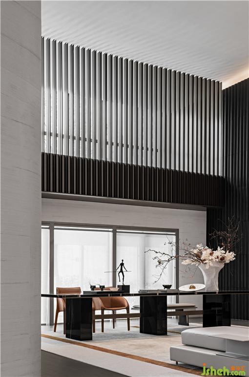 金屬與玻璃糅合于一體,出色的線條感表現(xiàn),營(yíng)銷中心設(shè)計(jì)借助落地窗透射自然光,明暗交織,盡呈現(xiàn)代空間美學(xué)。