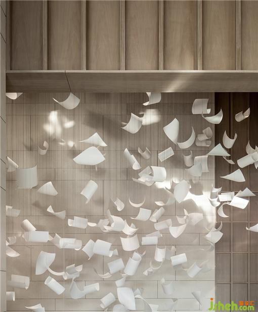 銷售中心設(shè)計(jì)裝置如書卷紛紛,亦如時(shí)光剝落,于木色交錯(cuò)相映,婆娑之間,藝術(shù)細(xì)節(jié)與書閣氣質(zhì)初現(xiàn)。