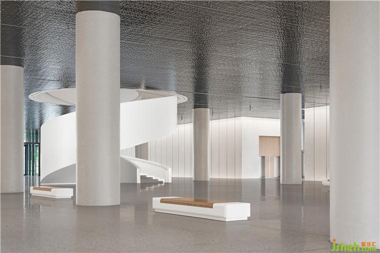 首層室內(nèi)吊頂采用了整體式的漫反射系統(tǒng),公共藝術(shù)中心設(shè)計(jì)將自然光線通過反射引入室內(nèi),形成自然與室內(nèi)光環(huán)境的循序過渡。