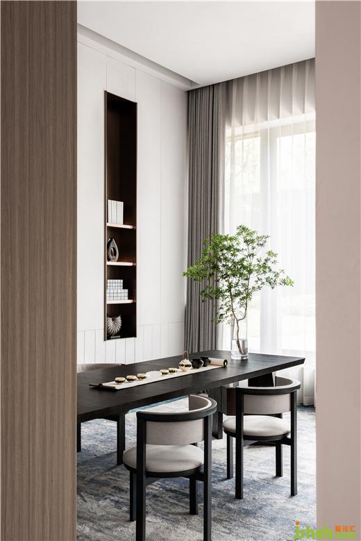 “溪水清漣樹老蒼”,本案毗鄰三江口,設(shè)計將寧波的自然風貌融入到細處,黑色大理石象征水的意象,因水而繁榮的城市,吸附了奔涌的訊息,草木豐盛,生生不息。