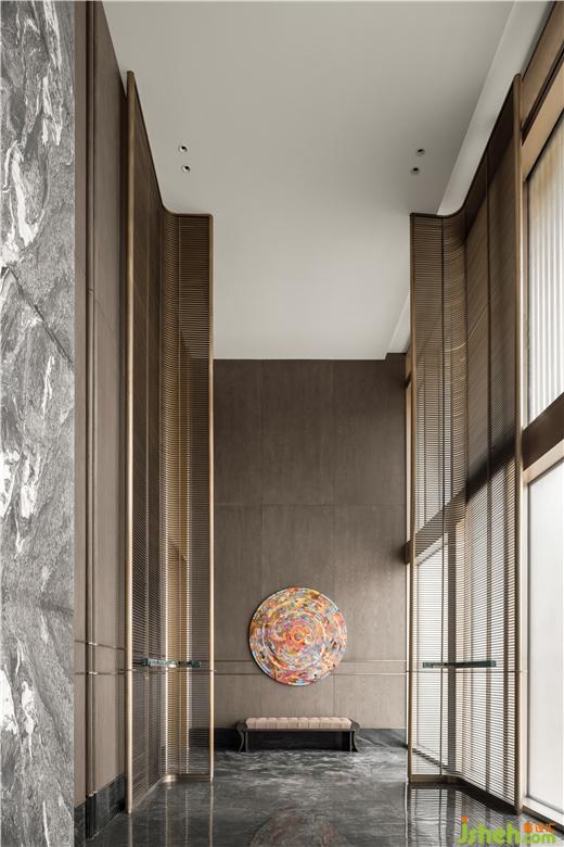 杭州縵云樣板房設(shè)計首層大堂是歸家的接駁站,城市與社區(qū)的聯(lián)系,工作到生活的過渡,奔波與家的情感轉(zhuǎn)換。