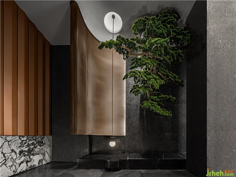 WJID取高奢酒店寶格麗為意象,成都龍湖瑰云里營銷中心設(shè)計將其大膽?yīng)毺?,尊貴而雅奢的文化精髓通過設(shè)計手法與空間融合,脫離傳統(tǒng)售樓空間的語境,打造一個生活藝術(shù)與度假氛圍交織的尊貴體驗(yàn)空間。