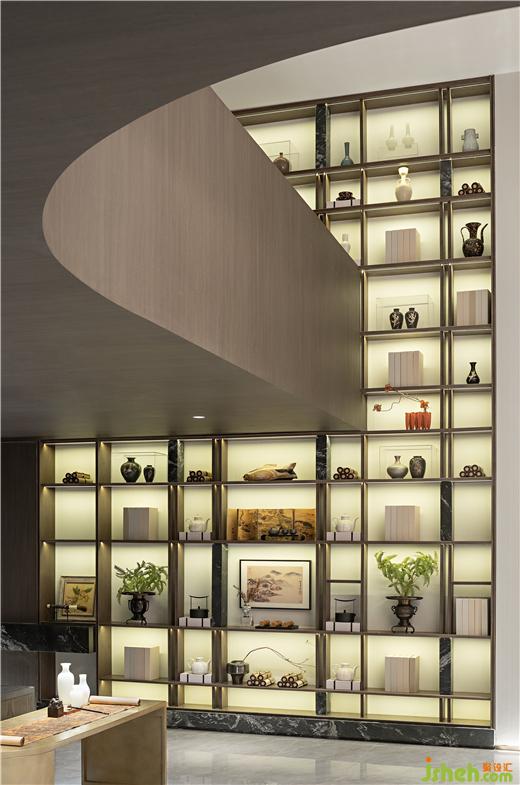 將屋主的喜好盡數(shù)陳列,有次序的搭配和裝飾形成如影隨形的空間融合感,武漢綠城湖畔雲(yún)廬樣板房設計將碎片化的收納集中裝飾組合成同一系列的完美的藝術(shù)作品。