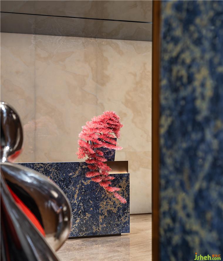 泉州萬科城灣壹號營銷中心設(shè)計對前廳不遺余力的雕琢,是迎接最崇高的禮遇。玉石的通透與質(zhì)感,氤氳出別具一格的云蒸霞蔚鏡像。
