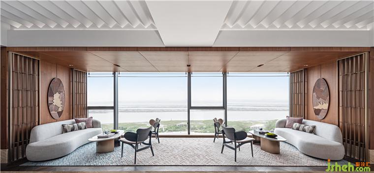 憑欄極目海闊處,氣勢曠達天涯遠。休閑洽談區(qū)作為近海樓臺的盛景之首,泉州萬科城灣壹號營銷中心設(shè)計將“引海景入戶”的設(shè)計理念發(fā)揮得淋漓盡致。