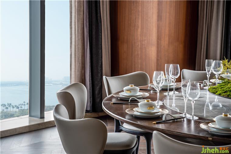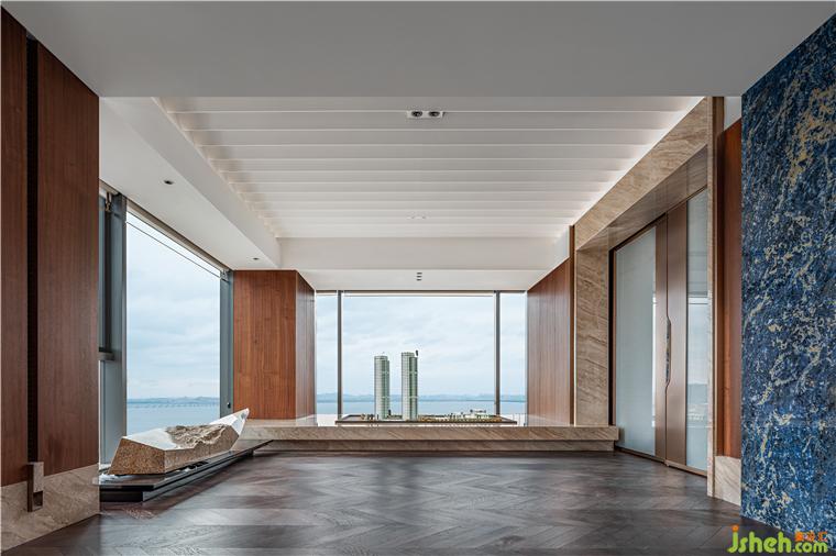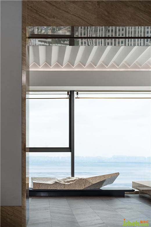 石材與幾何線條的質(zhì),與海納百川的容,對話,融合,衍生出中和之美的意象和生命力。向內(nèi),極致的精度和雅意,激活了空間的高格屬性;向外,可引入天地大美,胸襟無限的氣度全開。