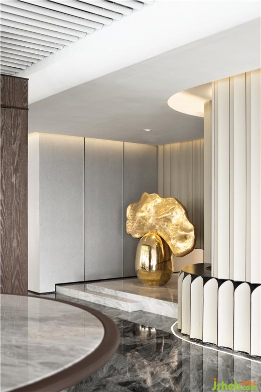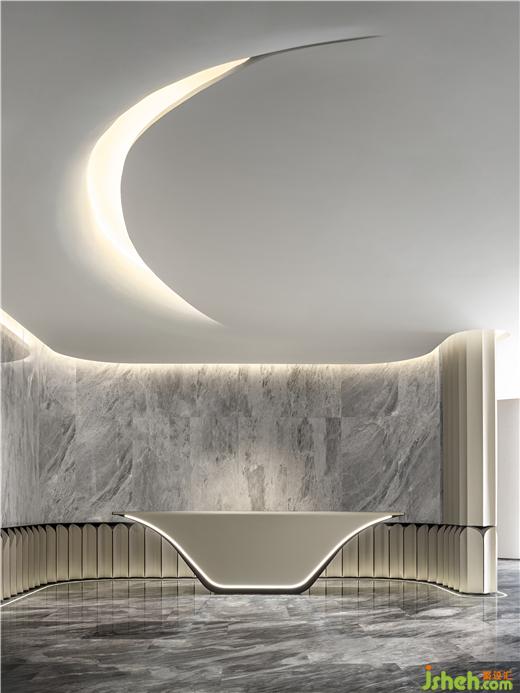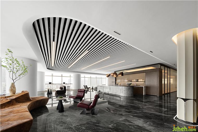 優(yōu)雅柔長,藏于細(xì)部,秩序與沉穩(wěn)的聯(lián)結(jié)是都市精英氣質(zhì)的體現(xiàn),流暢開放的空間曲調(diào)在其中溫柔延展,??谵k公室設(shè)計(jì)大體量的墻體曲線形態(tài)彼此串聯(lián),營造出優(yōu)雅、時(shí)尚的空間氛圍。