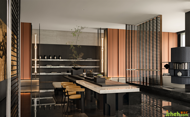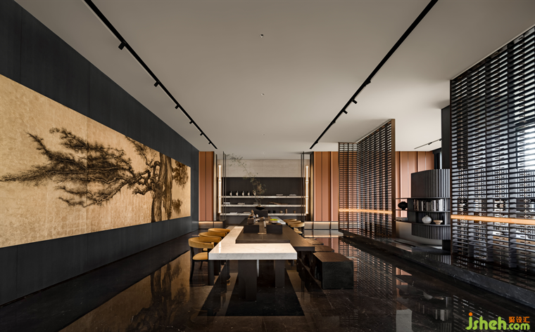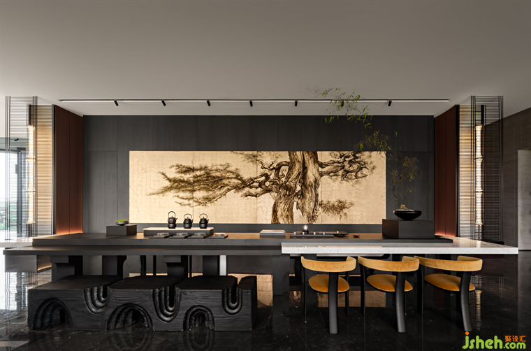 多功能區(qū)將東方山水的意境以現(xiàn)代設(shè)計語言融入空間的造景,與三五好友在此品茗、小憩,感受悠然自在的東方氣韻,在時光中慢慢流淌。