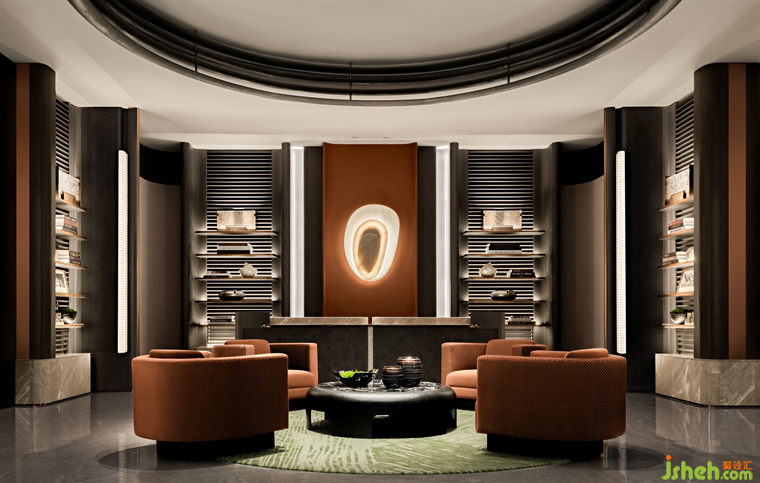 流光瑩澈,溢彩盛綻。會(huì)所水吧區(qū)以優(yōu)雅的紅色、深邃的黑色為主色調(diào),演繹卓然風(fēng)姿。營銷中心設(shè)計(jì)云石壁燈映照出悅目光暈,綻放雋永新趣。