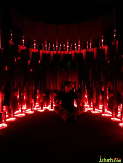The temporary photo area at the entrance is overlapped and staggered by basic modules,which makes it independent of the wall and ceiling.
