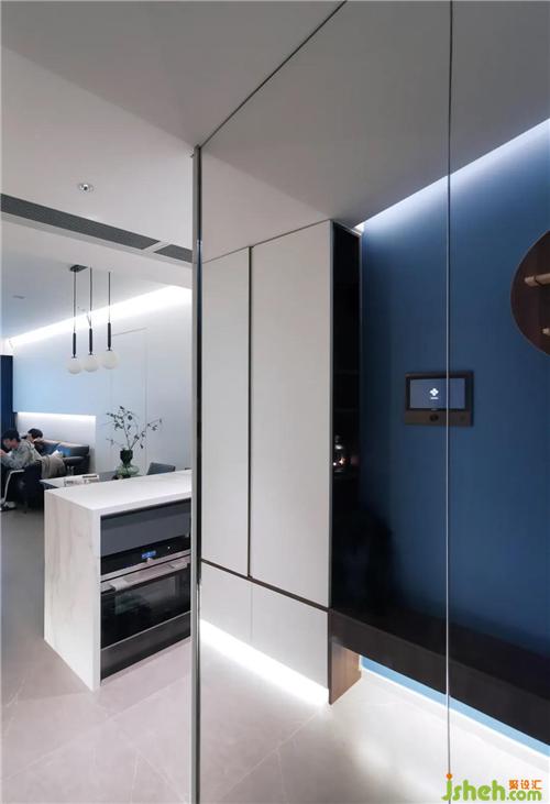 主材運用:巖板 瓷磚 生態(tài)板 窄框玻璃門 乳膠漆