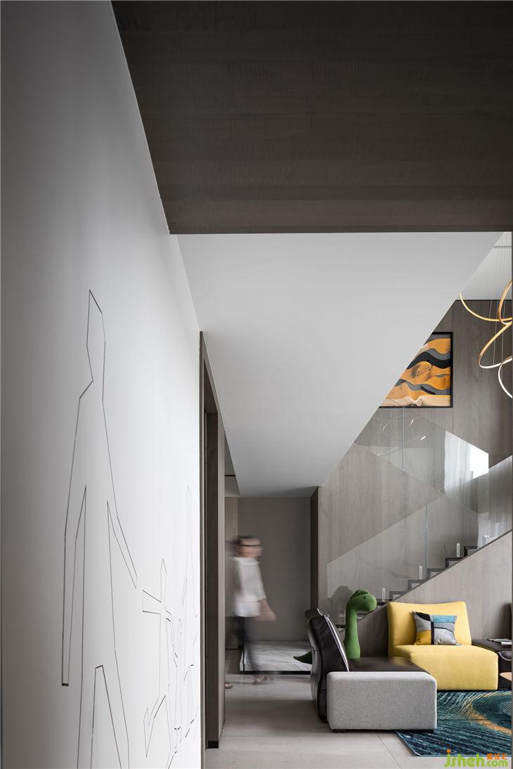 在現(xiàn)今快節(jié)奏的生活狀態(tài)下,家的設(shè)計承載著更多的可能,不僅是傳統(tǒng)意義上的遮風(fēng)避雨,更多的而是心靈上的放下。本案為設(shè)計師自宅,設(shè)計師通過銳意不凡的圖形、比例、線條、色彩、質(zhì)感等一切的介質(zhì),以回歸本心的堅韌,試圖探索著更多屬于當(dāng)代生活方式的表達。