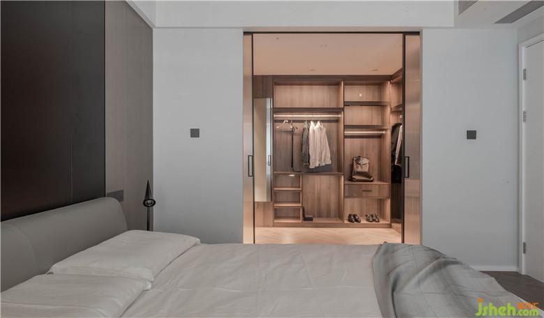 衛(wèi)生間外擴成超大衣帽間,滿足業(yè)主對于著裝的需求,又有品質(zhì)感。多功能區(qū),通過上軌道可移動的白色折疊門來開合這個又能當(dāng)休閑區(qū)又能當(dāng)客房,又能當(dāng)書房的空間。稍微把這個房間縮小些,但大小適中能滿足偶爾客人的居住。