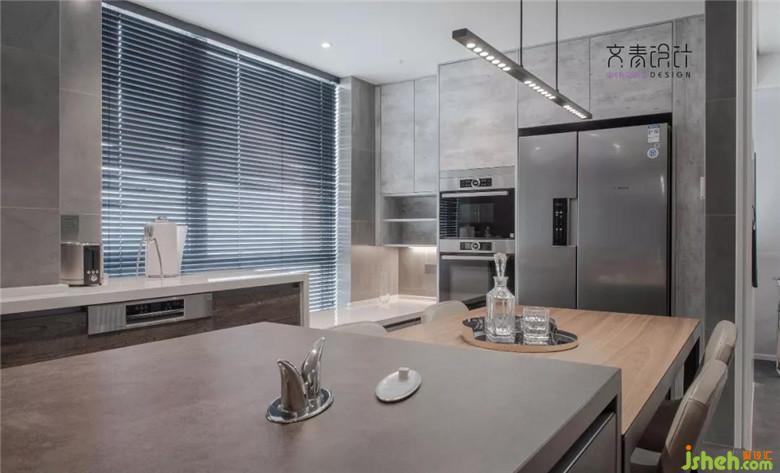 餐桌和島臺一體,多了操作臺面,對于現(xiàn)代餐飲,有些家庭和業(yè)主開始喜歡健康飲食,爆炒類的少了,蒸煮煎的話,還是很適合開放式餐廳廚房一體的。