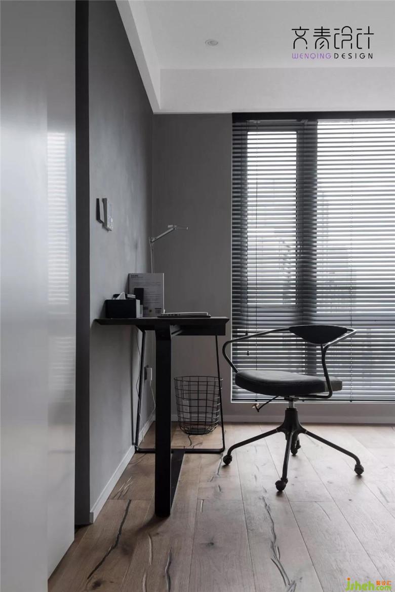 黑色床頭背景和單人椅子呼應(yīng),百葉格柵也能讓進(jìn)戶的光線更加柔和。