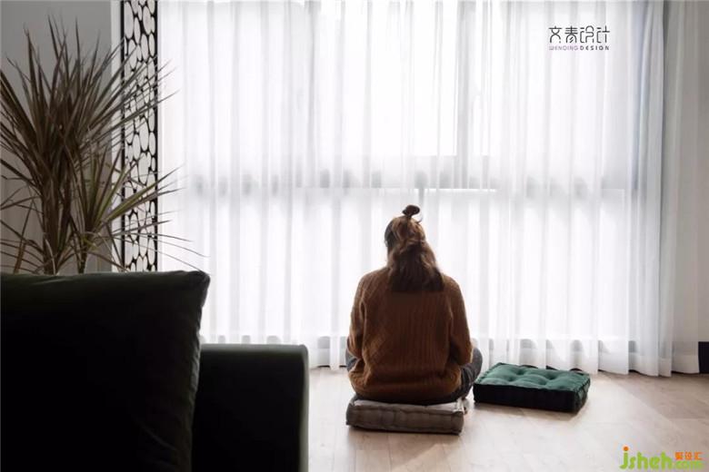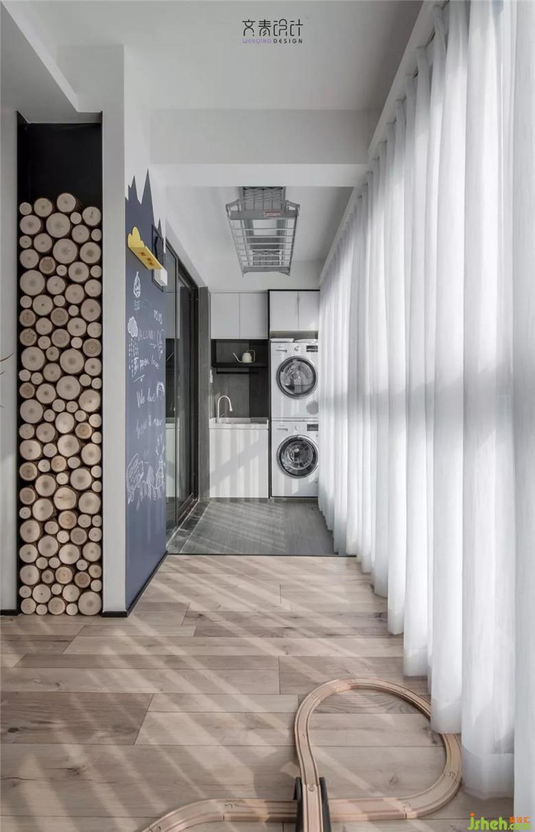 陽(yáng)臺(tái)特意抬高做了地臺(tái),將雜物區(qū)、休閑區(qū)、客廳明確區(qū)分開。