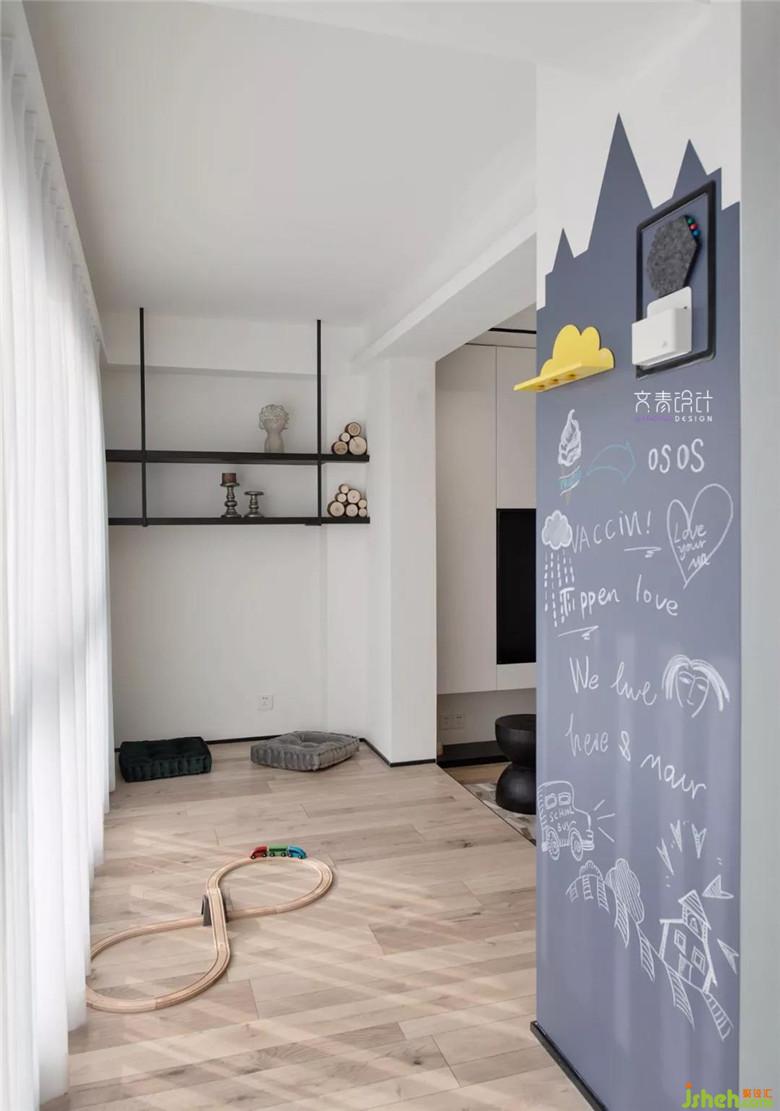 不一定女孩就要用粉色,男孩就要用藍(lán)色,跳出這個(gè)既定規(guī)則,灰色的沉穩(wěn)搭上黃色的跳躍活潑,同樣能營(yíng)造出令人滿意的兒童房.